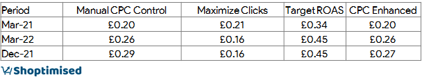 Whilst Manual CPC is increasing, the largest CPCs are being driven from having Target ROAS set up within Standard Shopping campaigns.